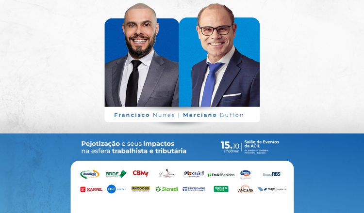 - Pejotização e seus impactos nas esferas trabalhista e tributária – Em uma linguagem clara, prática e acessível, esta palestra de 60 minutos traz aos representantes de empresas uma análise direta sobre os impactos da pejotização nas relações de trabalho, destacando os cenários mais prováveis diante da aguardada decisão do STF sobre o tema. O foco é oferecer conhecimento aplicável ao dia a dia da gestão empresarial, traduzindo as nuances jurídicas em orientações objetivas, para que líderes e gestores possam compreender riscos, ajustar estratégias e adotar práticas seguras em suas rotinas de contratação e gestão de pessoas.