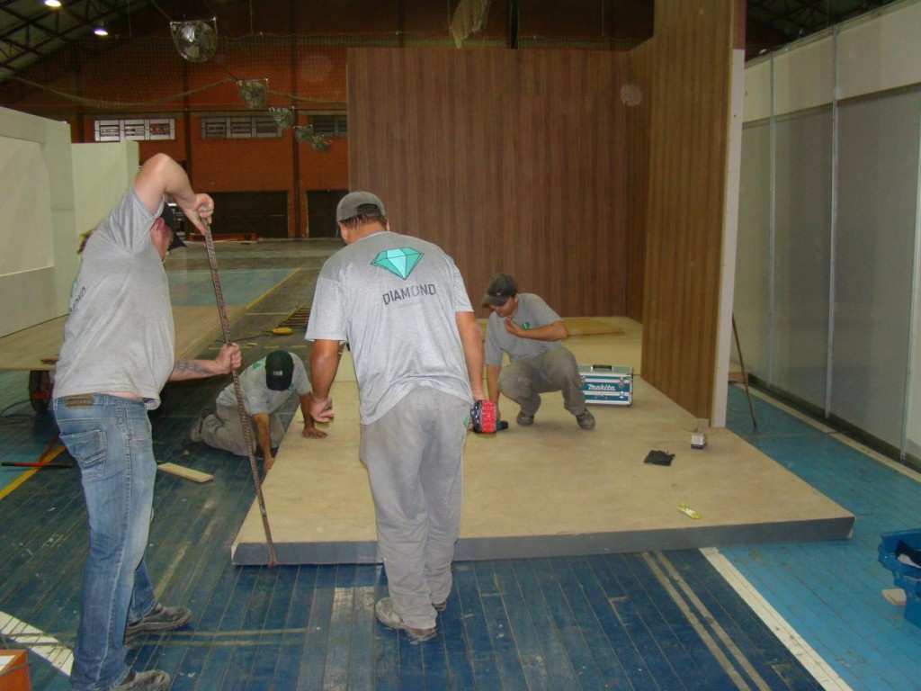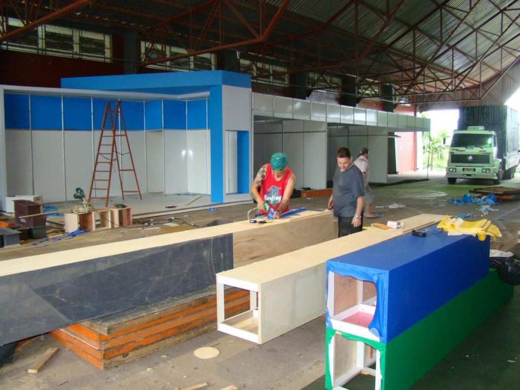 Nesta quinta-feira, começou a instalação das estruturas das empresas que optam pela personalização dos seus espaços. Nesses casos, desde o piso, as paredes e demais detalhes de visual e exposição dos produtos são providenciados pelo próprio expositor. Esse trabalho movimenta o Parque em todos os pavilhões e área externa. E mesmo com a chuva, equipes trabalharam desde o começo da manhã.